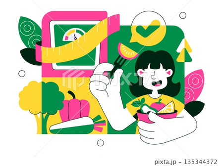 Plant Based Diet Lifestyle Vector Illustration For Healthy Vegan Nutrition, Sustainable Living, Natural Food in a Cartoon Background