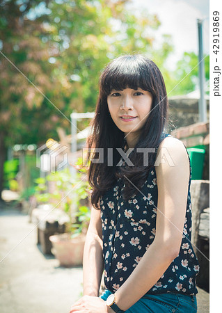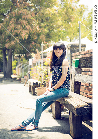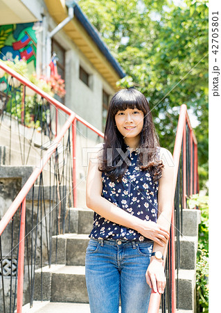 亞洲台灣中國習俗復古台中霧峰光復新村女孩女子人像肖像模特兒美女外拍藤蔓美麗陽光瀏海髮型造型牛仔褲服飾