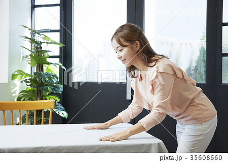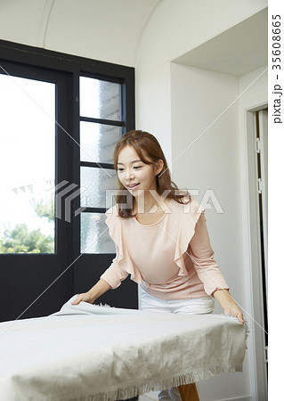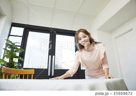 一個女人洗完她的手,兩種顏色後擦她的手的插圖