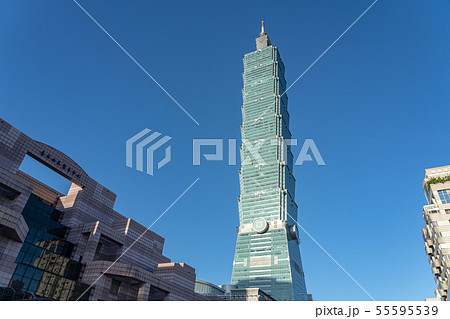 台北101台灣藍天猩紅色背景晴朗的交叉