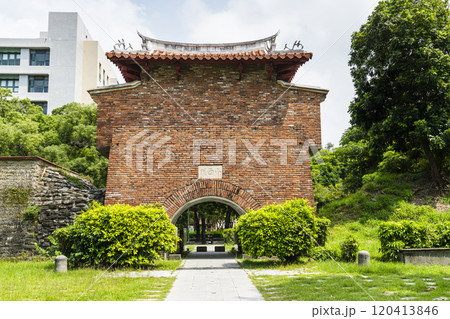 The formerly East Gate remains of Tainan Prefectural City Wall and Minor West Gate, Taiwan. It is part of the National Cheng Kung University campus.