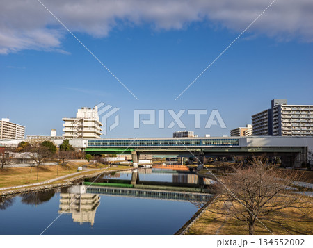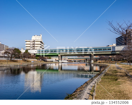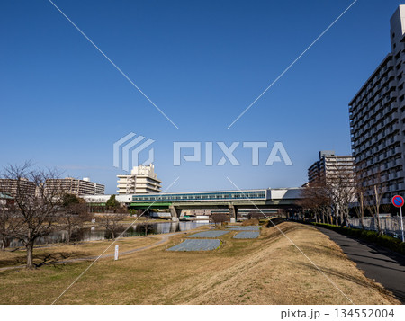 從這裡可以俯瞰都營地鐵東大島站,該站橫跨古老的仲川河。