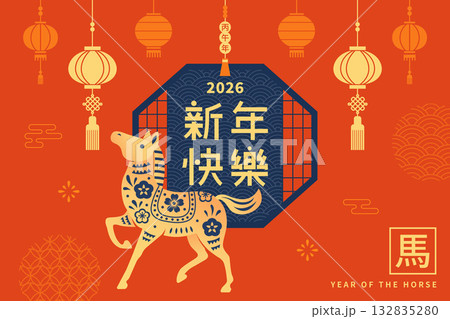 2026 Year of the Horse greeting design with traditional paper-cut art