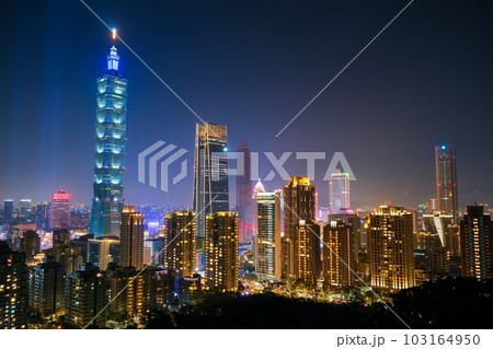 台灣台北市象山,從天文台(煙花平台)看到的台北夜景
