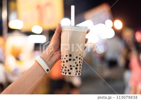 Advertise template with bubble milk tea concept design for commercial and marketing watercolor vector illustration