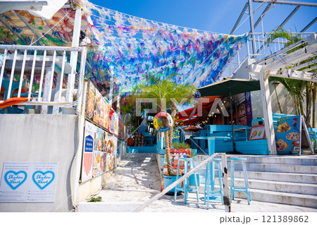 Umikaji Terrace 時尚沖繩南國觀光景點旅行約會地點白色建築藍天陽光明媚的熱帶