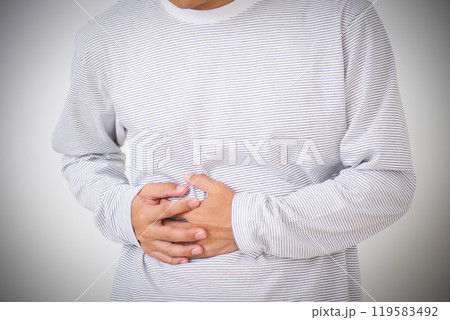 中年男子摀著右腹部