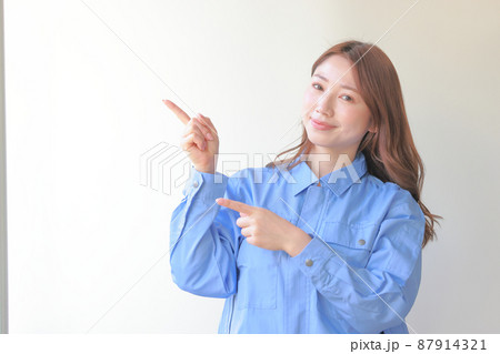 一個年輕女子的手勢,比如比較右手和左手的東西