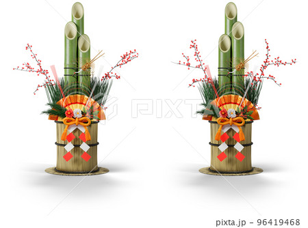 一對門松圖形材料/新年/新年賀卡/新年佈局項目(帶陰影)