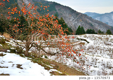 白雪皚皚 雪景 日本柿