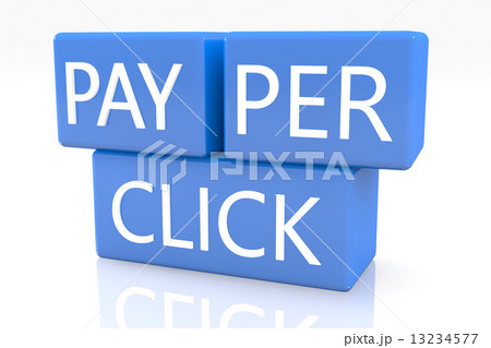 Per pay click or cost per click technology, flat cartoon computer with internet marketing share