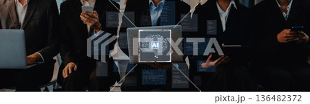 Corporate deal and contract signing with digital technology overlay for partnership and growth strategy