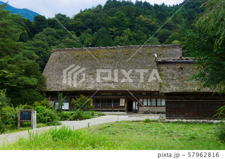 白川鄉的秋天風景,合掌屋頂上的白鷺