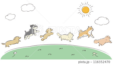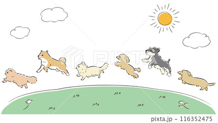 草原上奔跑的狗的插圖集