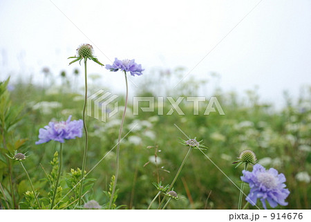 吾妻山草原上盛開的藍盆花