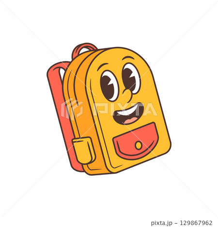 Cute Cartoon Yellow School Backpack Mascot with Big Smile and Orange Details Vector Illustration