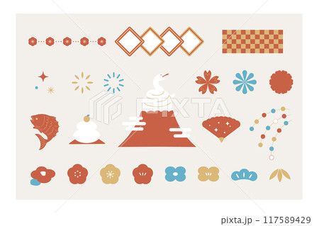水彩風格,新年插畫素材。用於新年賀卡等。矢量材料。
