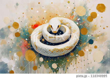 蛇年插畫新年賀卡設計素材「華麗活力花圈蛇」複製空間框架