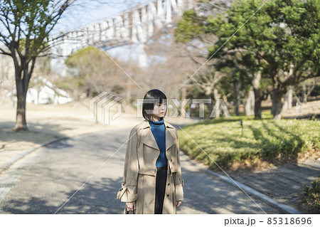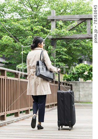 一位優雅的日本女性,頭髮花白,穿過吊橋