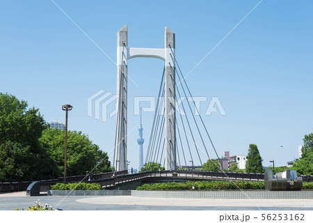 從下面看宮崎綾的照葉吊橋在藍天上的景色