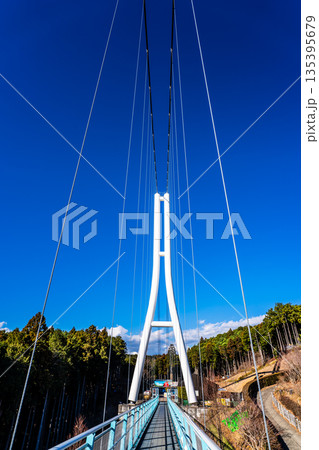 低角度拍攝的茨城縣常陸市的Ryujin Great Suspension Bridge