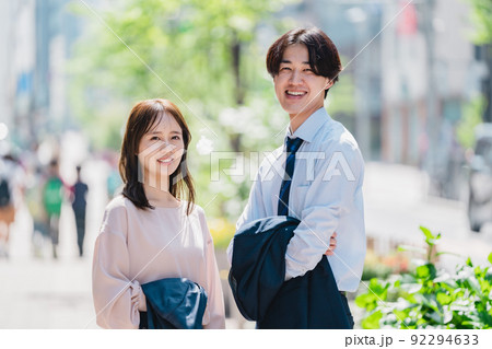 走在戶外的商人,男人和女人