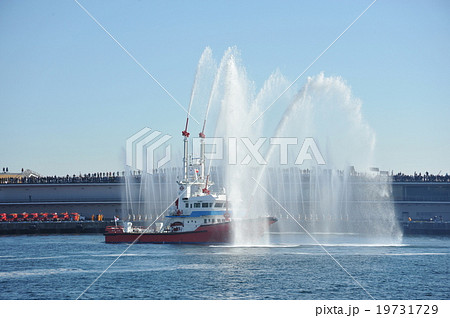 新年消防隊儀式上的噴水錶演和美麗的彩虹