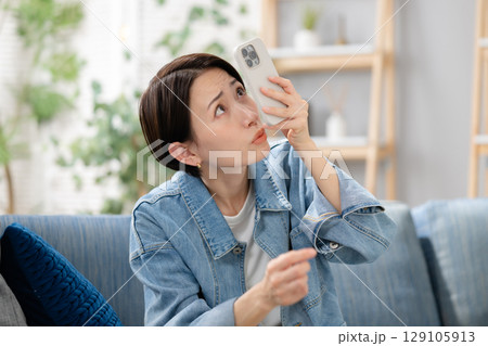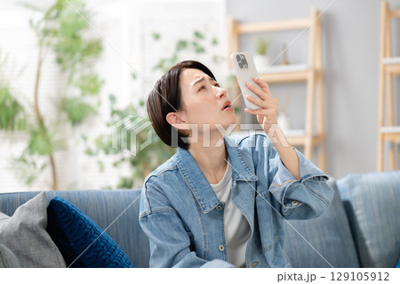 看著智慧型手機的女人