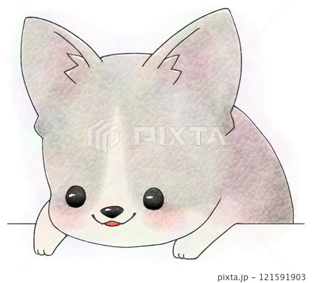 柯基犬從上面偷看(水彩風格/灰色)