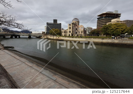 廣島 8 月 6 日是原子彈爆炸的日子。從元安橋眺望元安川下游。可以看到NHK大樓。
