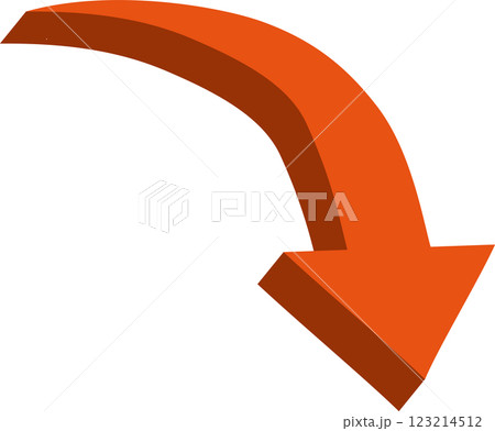 厚 3D 曲線箭頭-橘色向下箭頭圖