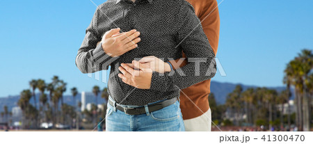 close up of male gay couple holding hands