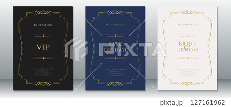 Luxury Wedding Invitation Set with Gold Border on Black, Navy, and Cream Backgrounds