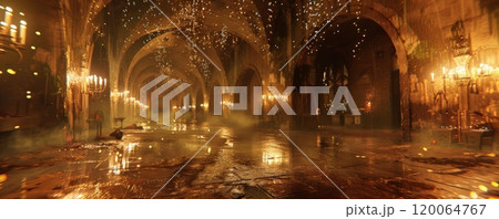 Majestic Medieval Castle Hall with Glowing Candlelight and Enchanting Atmosphere