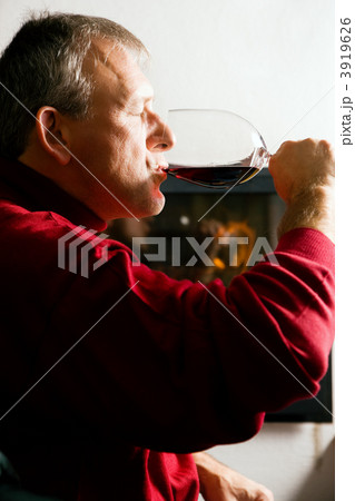 Mature woman with a glass of red wine