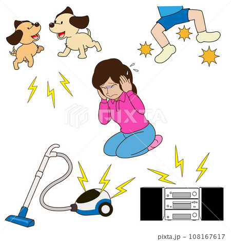 吵鬧、摀住耳朵的商人和婦女的插圖集