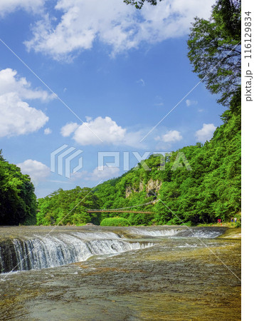 群馬縣沼田市的春天、綠意盎然的吹割溪谷、吹割瀑布