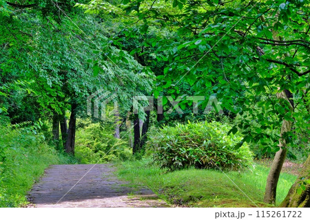 新鮮的綠色山路、水流、藍天、美麗的自然、東京的山間步行