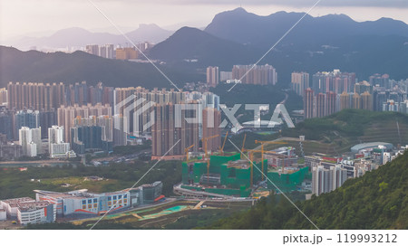 View from drone of historical districts of Kutaisi with Bagrati Cathedral