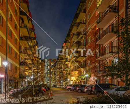 Jikia House Residential Complex in the Night Urban Landscape of Tbilisi, Surrounded by Other Buildings and Streets.