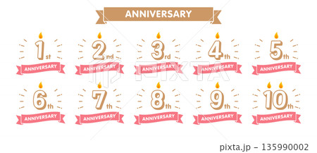 週年紀念標誌“1週年、2週年、3週年、4週年、5週年、6週年、7週年、8週年、9週年、10週年”