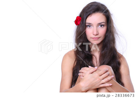 beautiful woman with long hair look at camera