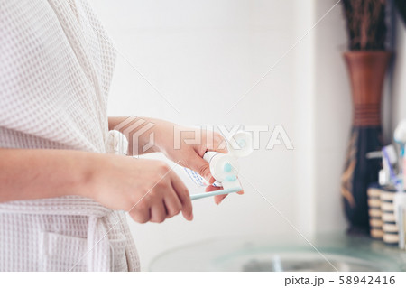 Closeup photo of woman putting toothpaste on