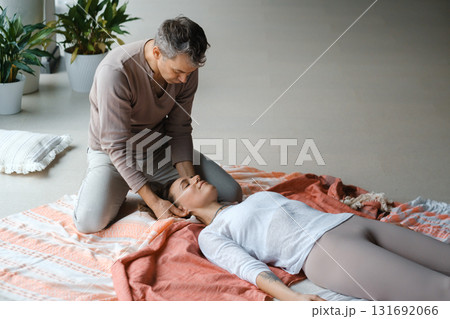 Relaxation and healing through gentle massage in a serene indoor setting during a wellness session