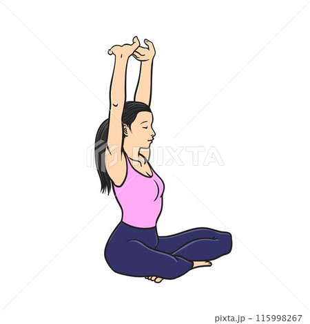 Woman doing seated mountain pose parvatasana exercise Flat vector
