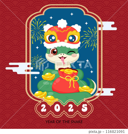 Cute snake character happy chinese new year 2025