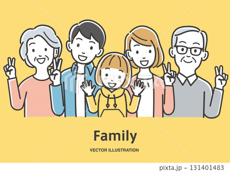 兩代家庭微笑著做出和平手勢