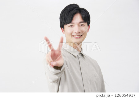 20 多歲男子,和平標誌,白色背景