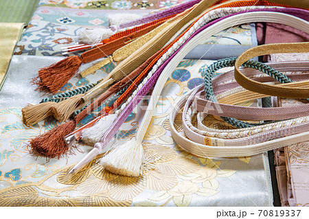 和服腰帶和 obijime obiage 和服商店和和服租賃的圖片