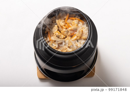 棕色陶罐敞開蓋子的插圖(用於蒸煮、火鍋、日式料理)